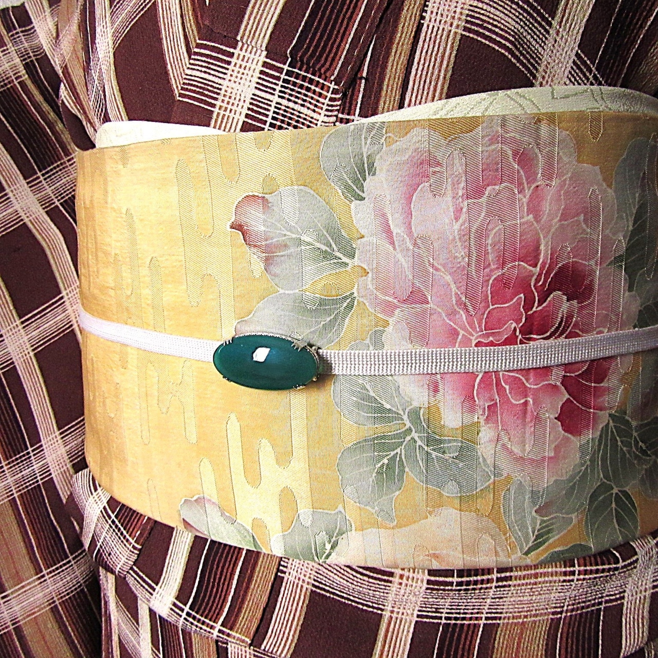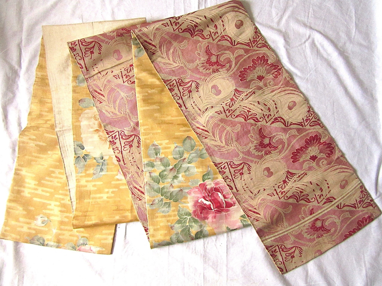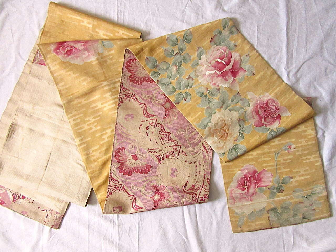 オールドローズ 薔薇 腹合わせ帯 アンティーク 着物