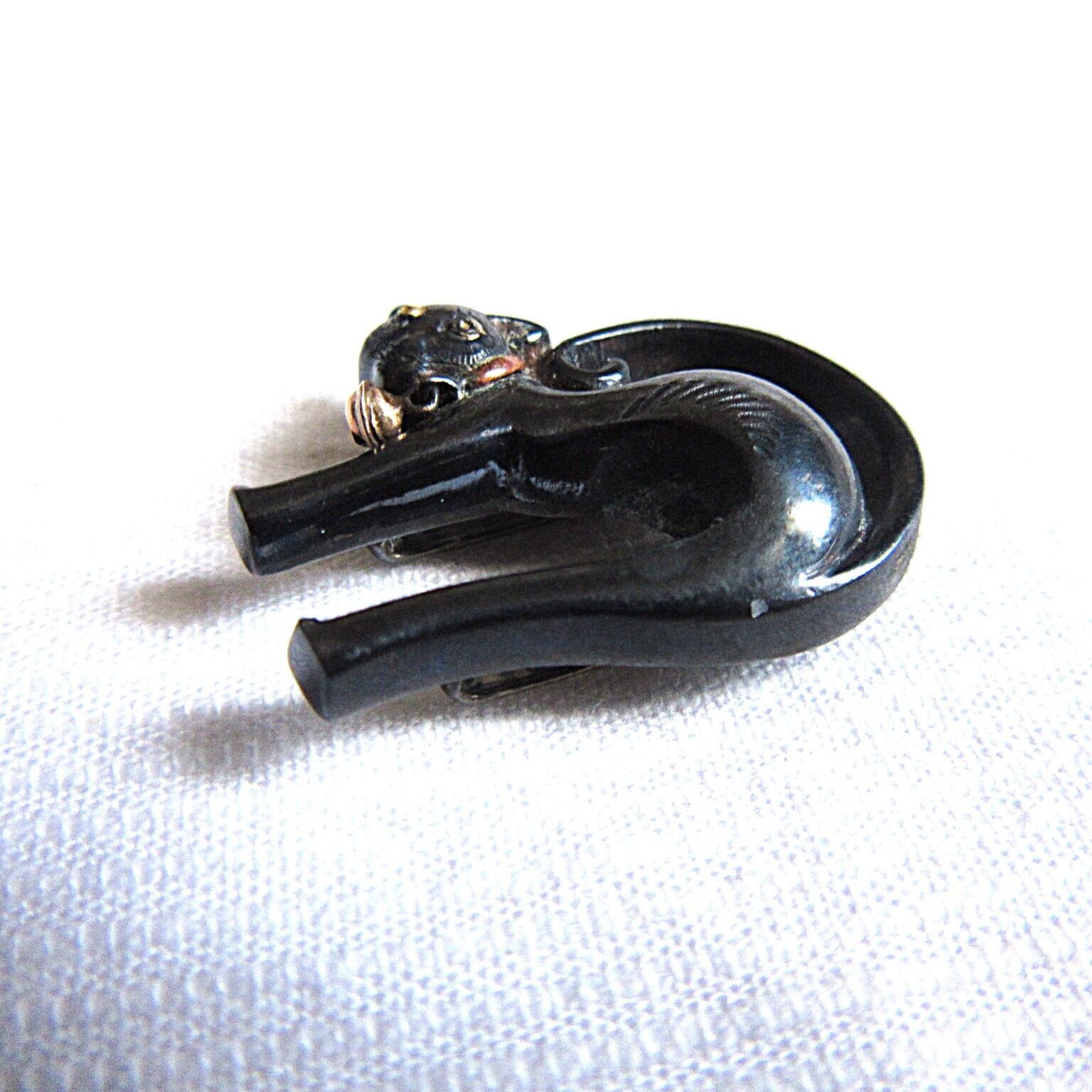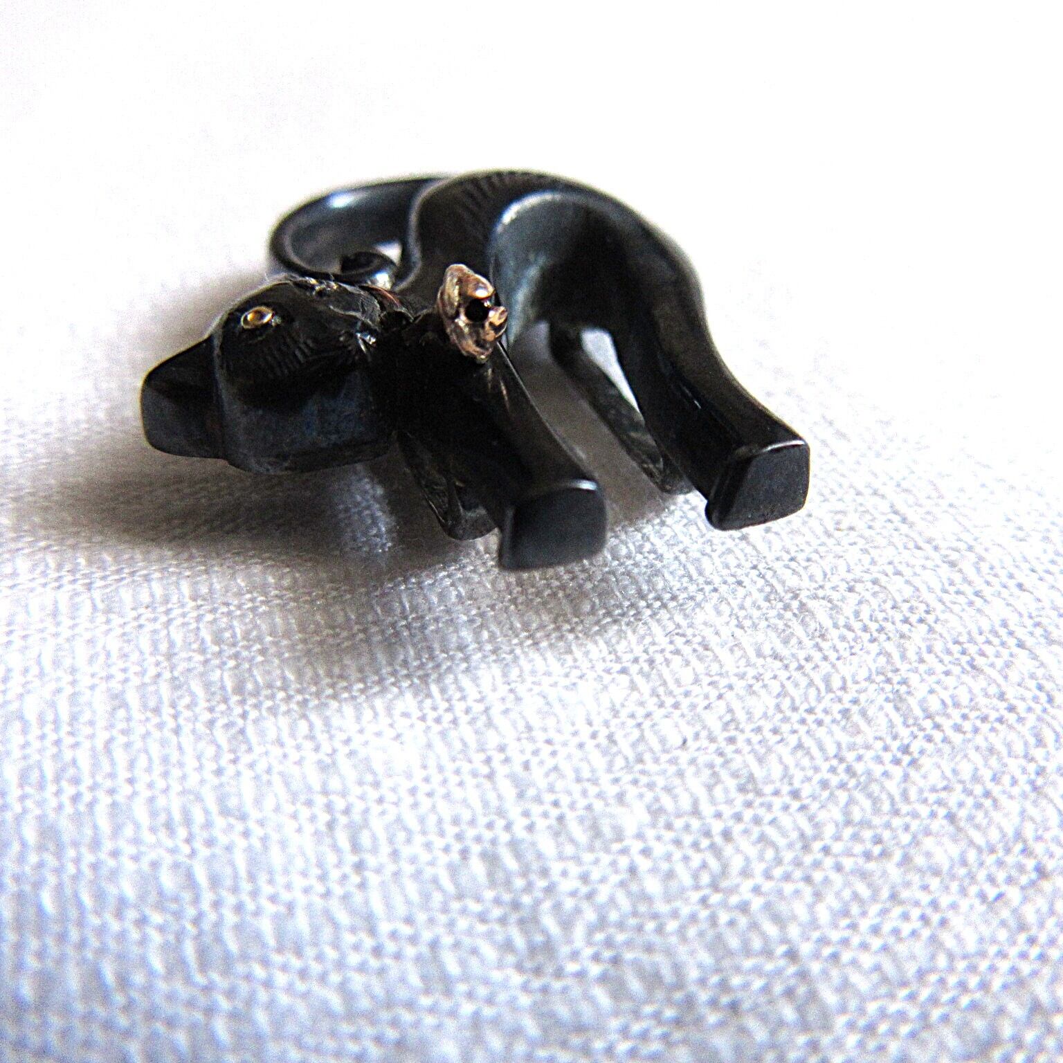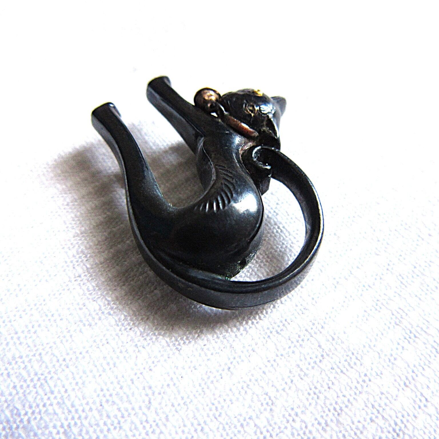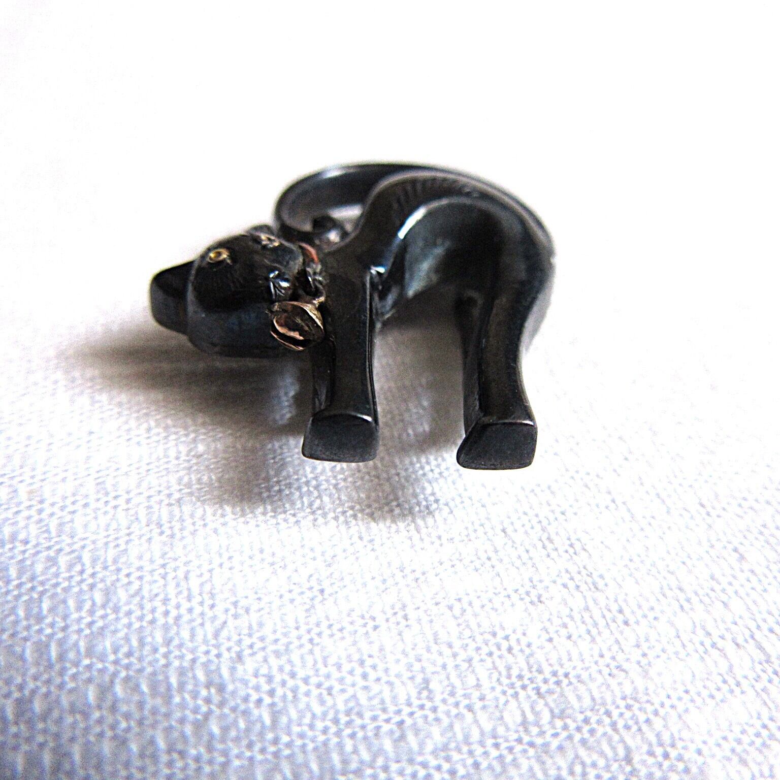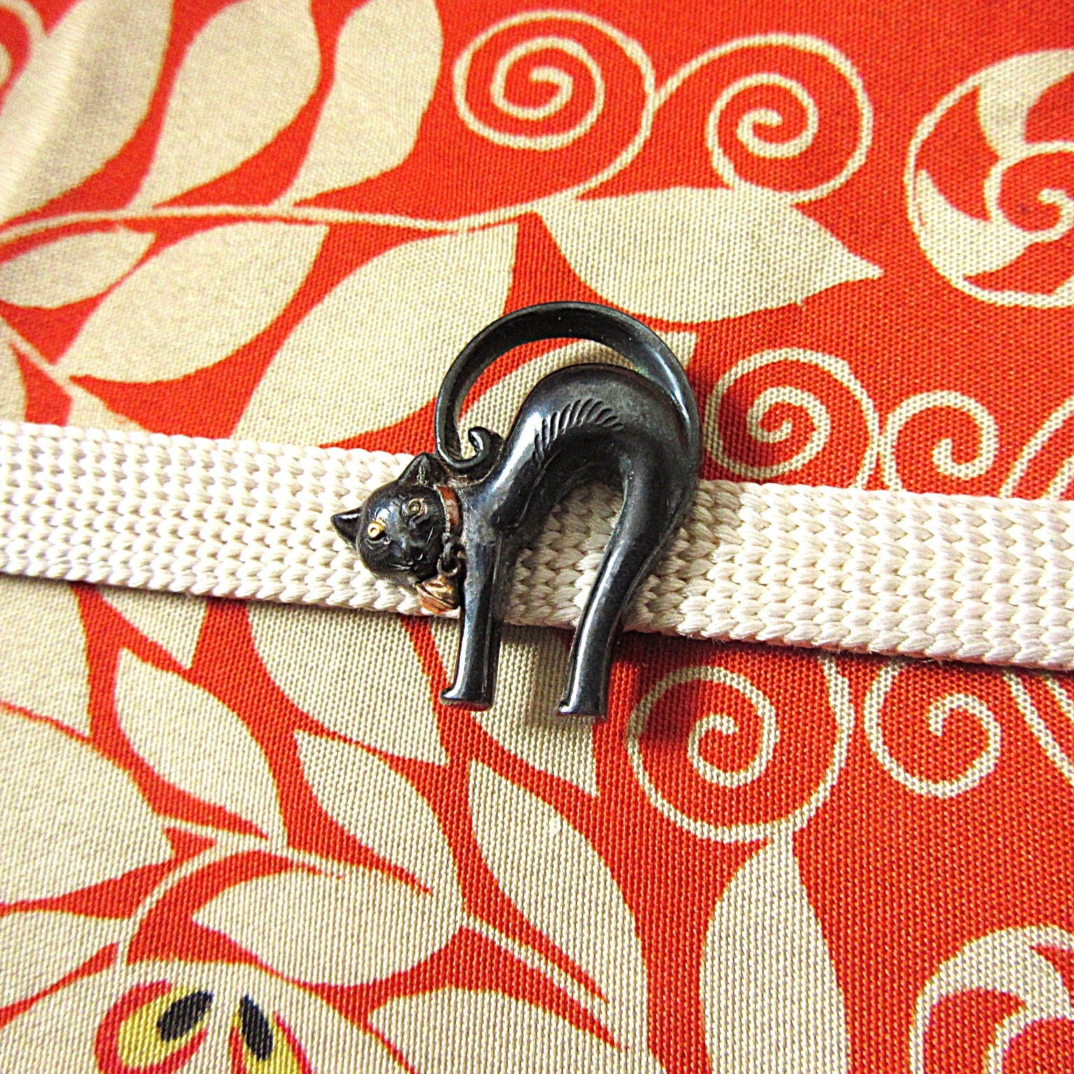 黒猫 アール・デコ 彫金 帯留 アンティーク 着物 ねこ ネコ