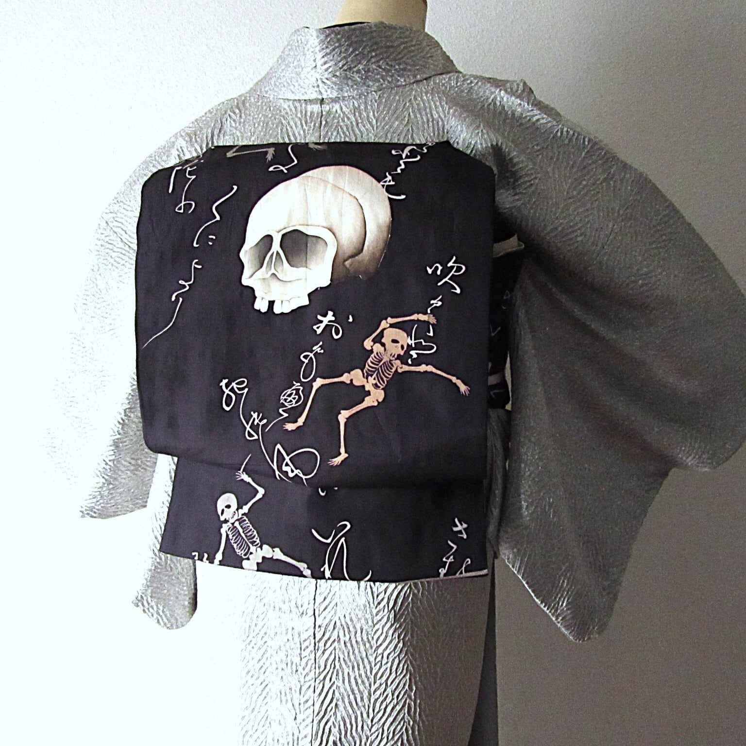 髑髏 骸骨 アンティーク 腹合わせ帯 着物