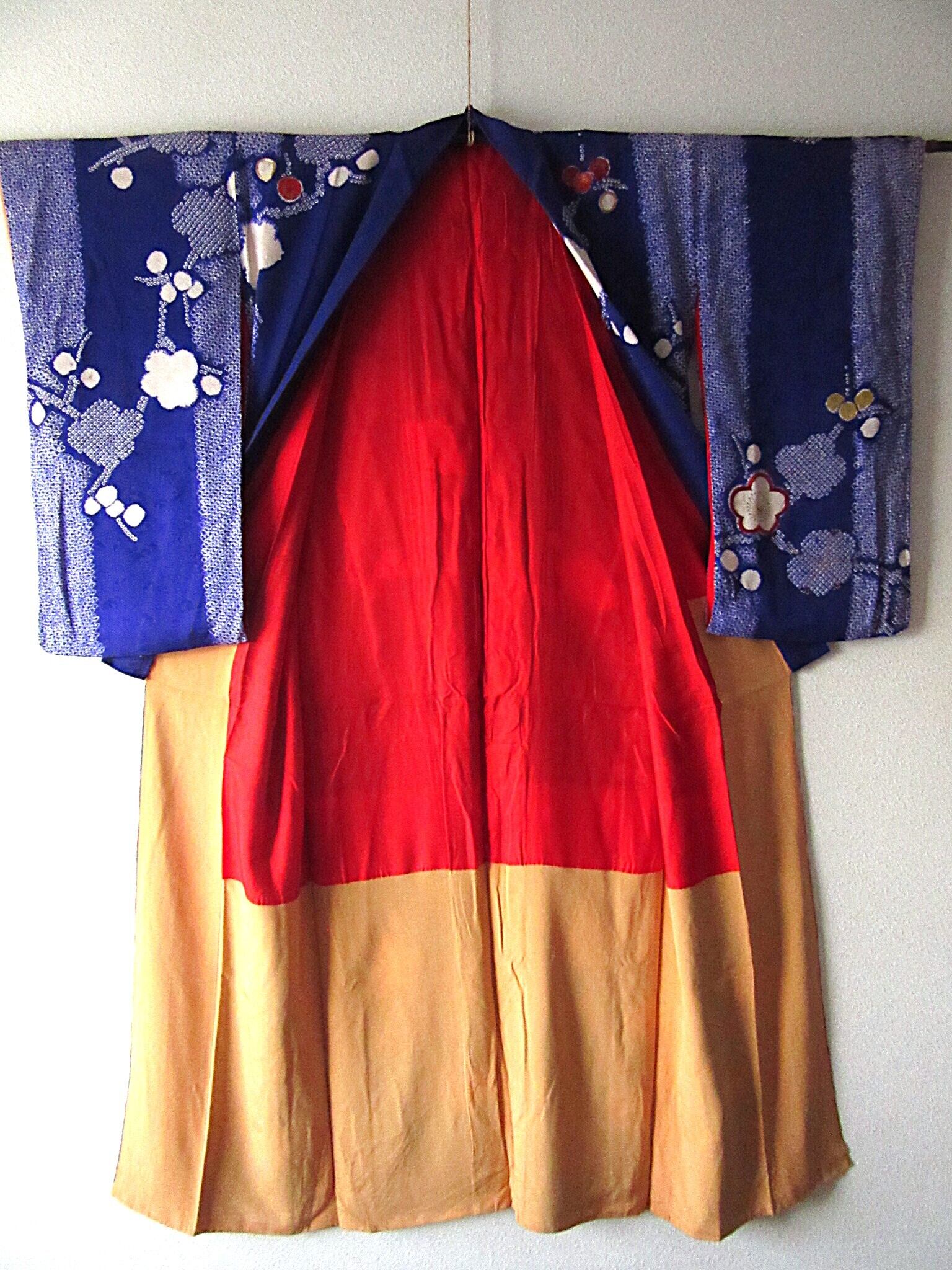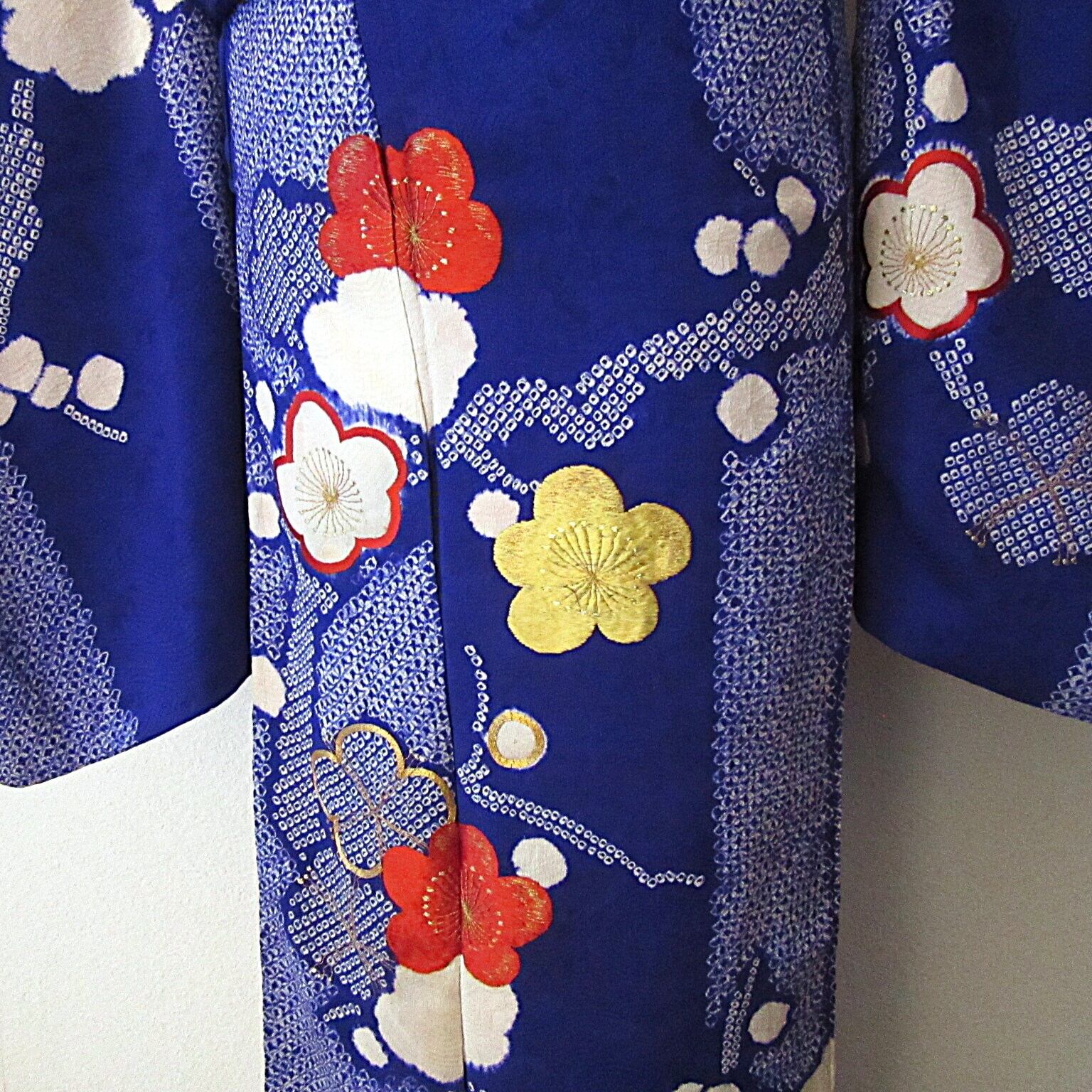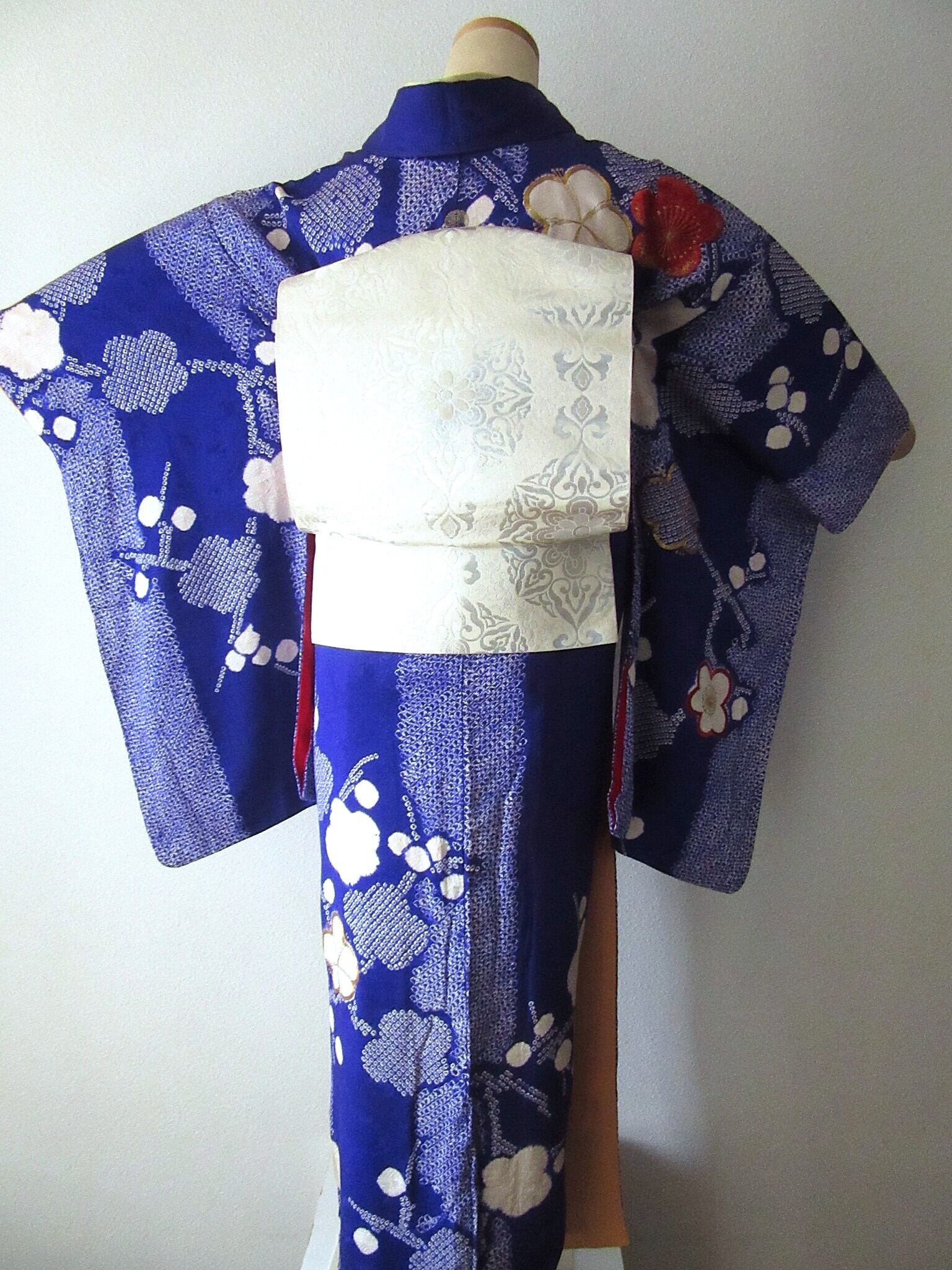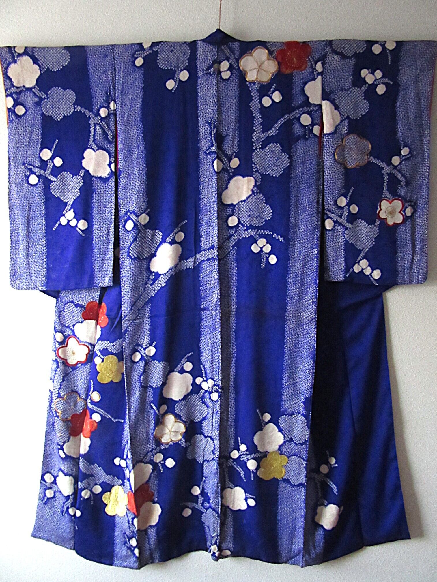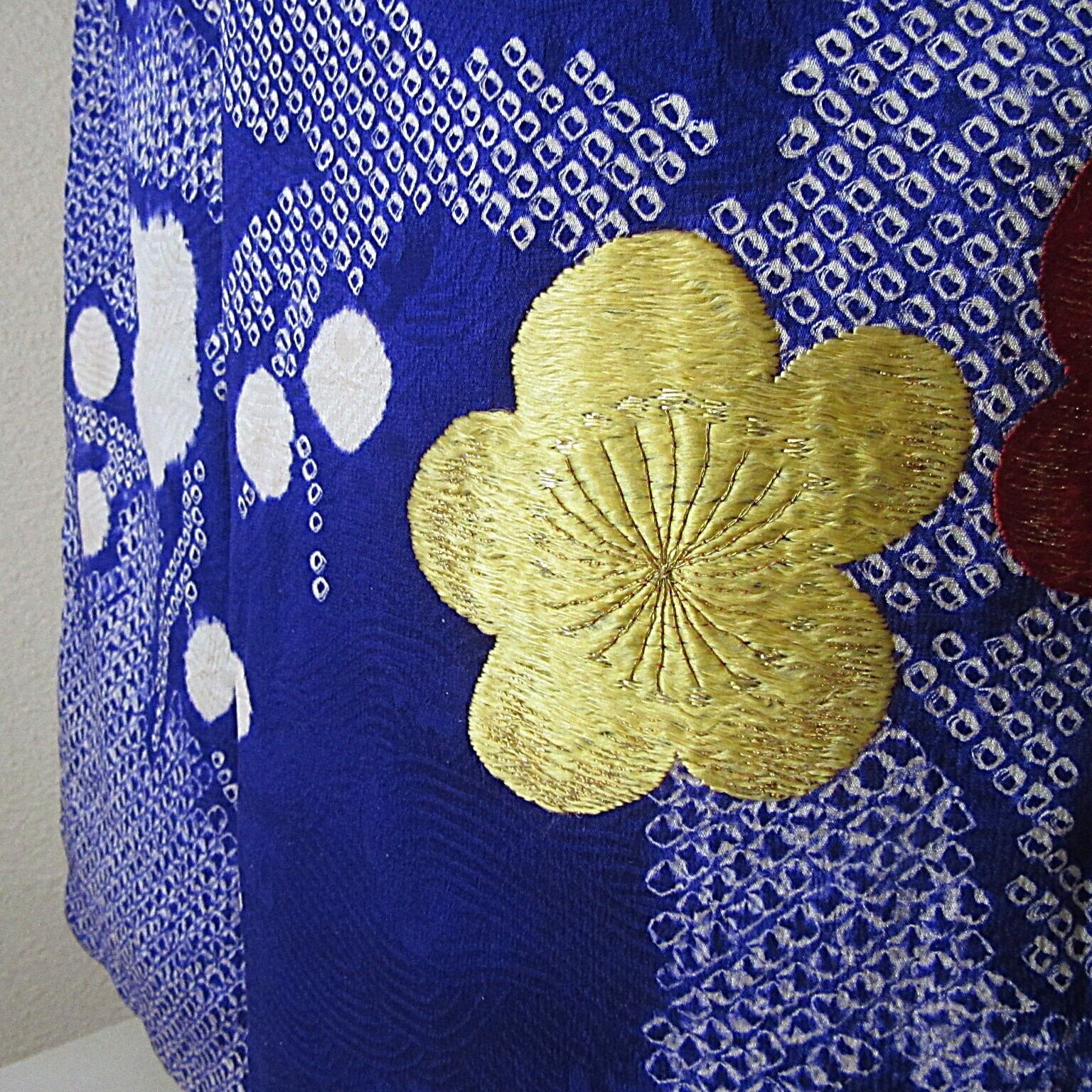 梅花 絞り 刺繍 訪問着 アンティーク 着物 正絹